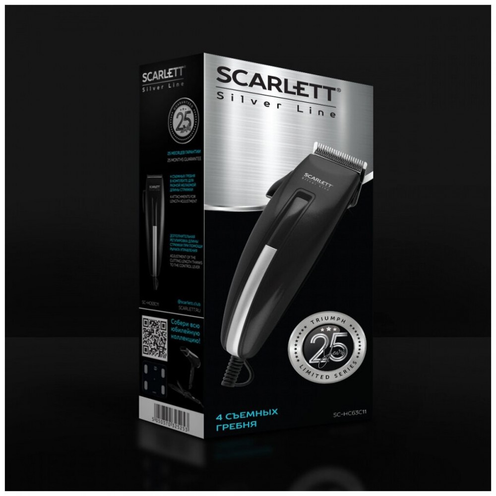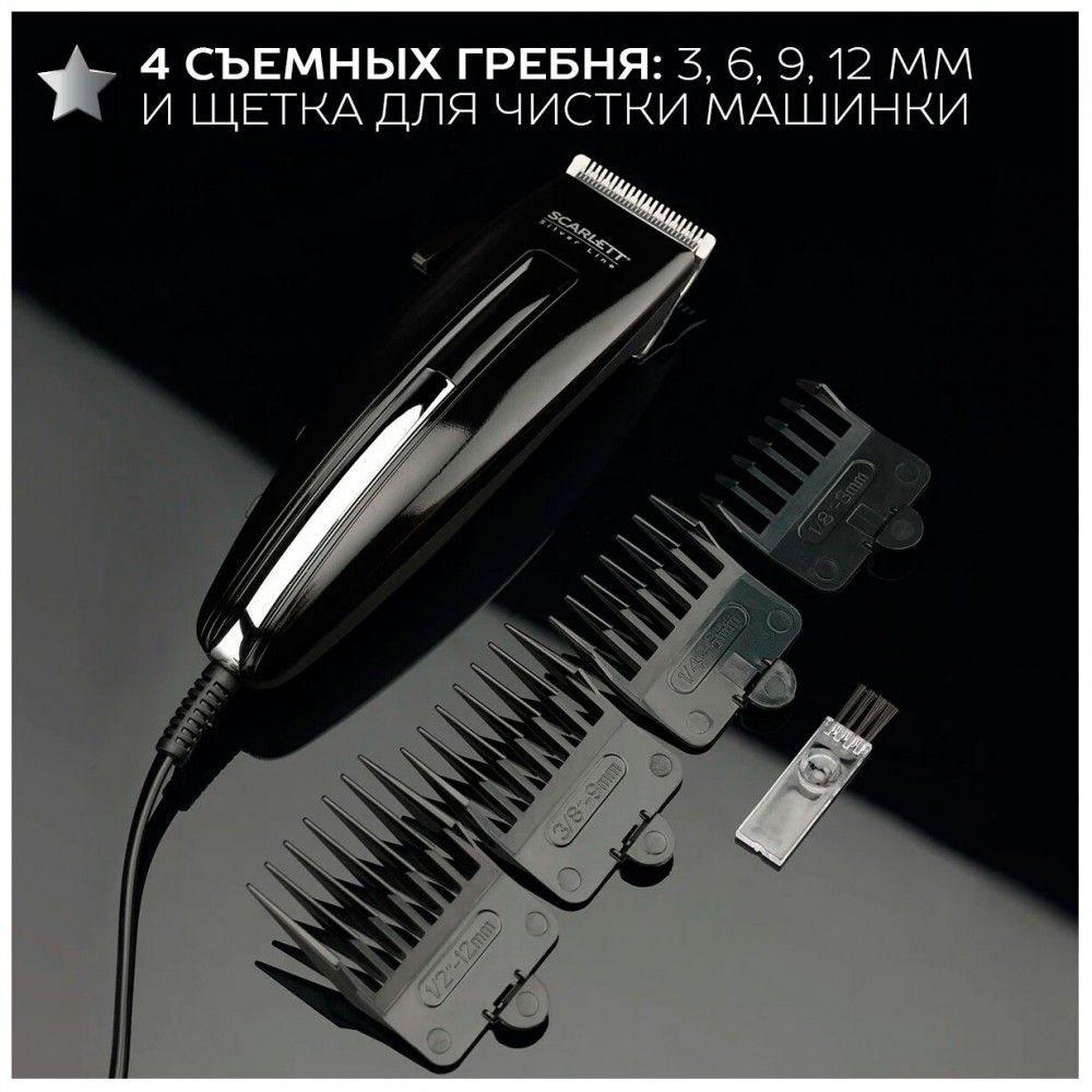 Машинка для стрижки Scarlett SC-HC63C11 позволяет регулировать длину волос в пределах 3–12 мм посредством смены насадок. Ее самозатачивающиеся лезвия обладают шириной 41 мм. Эти возможности оценят не только пользователи, которые собираются содержать прическу дома самостоятельно, но и начинающие мастера-парикмахеры.